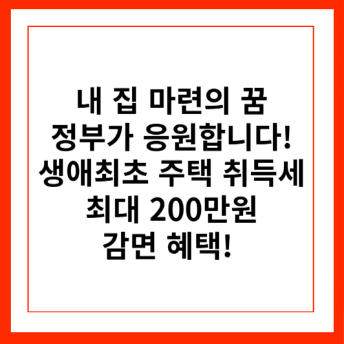 내 집 마련의 꿈을 꾸는 모든 분들을 위해 기쁜 소식을 전해드립니다! 정부에서 생애최초로 주택을 구매하는 분들을 위해 취득세를 감면해주는 제도를 시행하고 있습니다. 최대 200만원까지 감면받을 수 있는 이번 기회! 어떤 내용인지, 누가 혜택을 받을 수 있는지, 신청 방법은 무엇인지 꼼꼼하게 알아보고, 내 집 마련의 꿈에 한 발짝 더 다가가 보세요! 지금부터 자세한 내용을 함께 살펴보겠습니다.