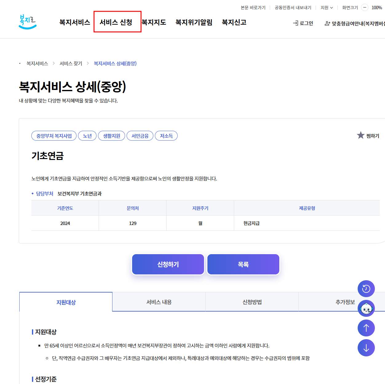 - "복지로" 홈페이지 접속 후, 기초연금 신청