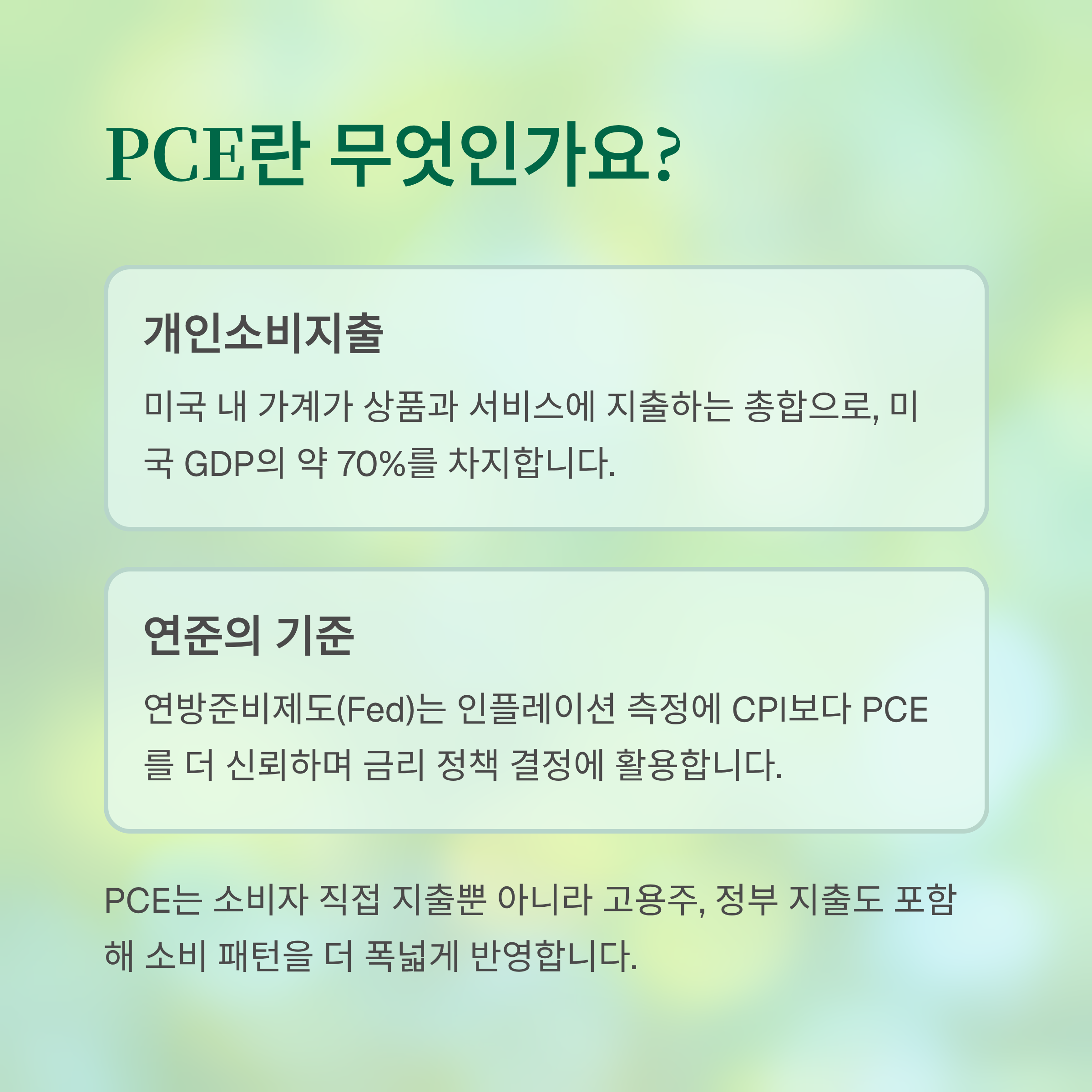 2025년 7월 미국 PCE 지표는 안정적인 2.6~2.9% 범위를 유지했으며, 이는 연준의 통화 정책과 금융시장 방향성을 예측하는 데 중요한 신호탄 역할을 합니다. 경제 상황이 시시각각 변하는 중이므로 PCE 발표 시 데이터에 주목하면 시장의 향후 변화와 투자 전략을 세우는 데 큰 도움이 됩니다.