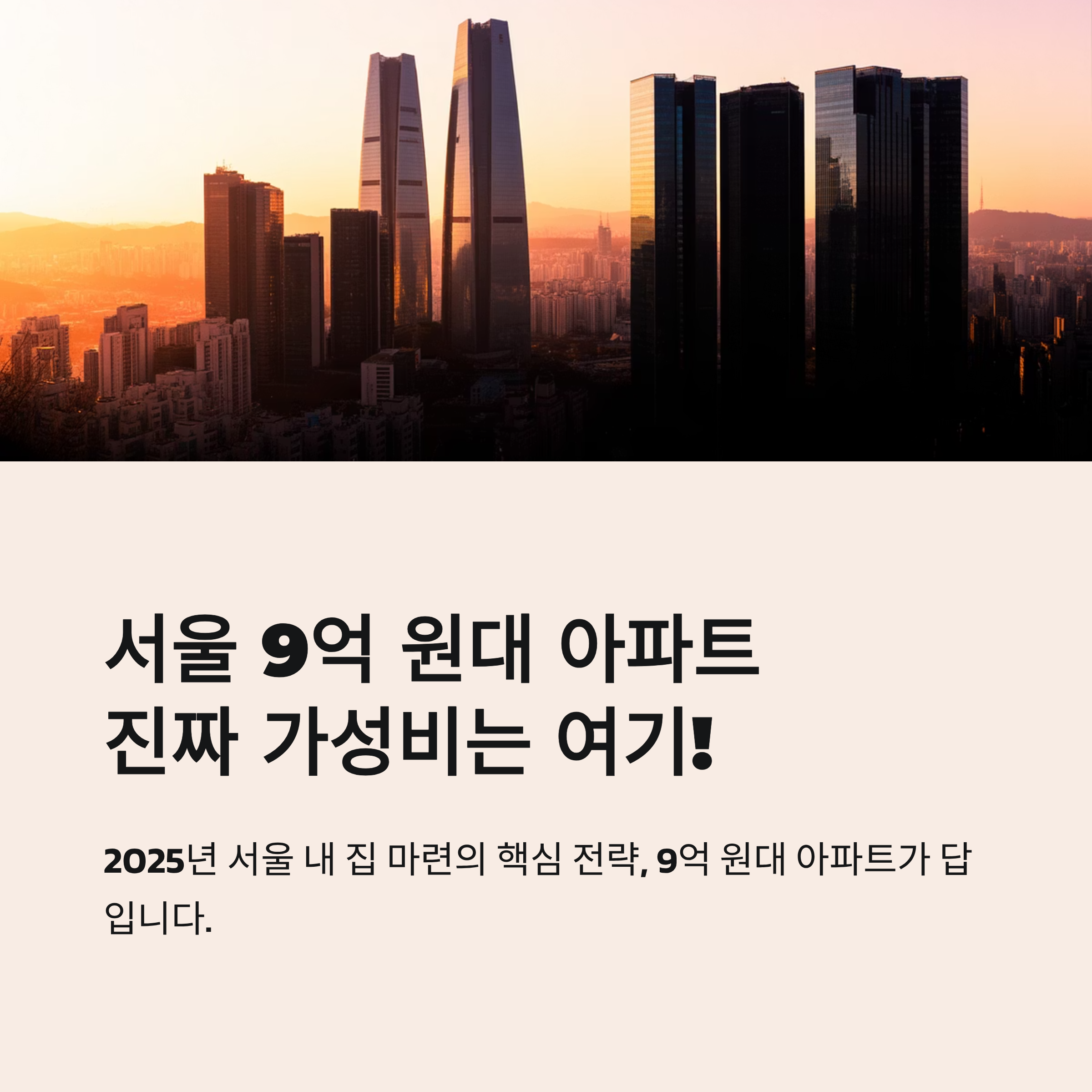 2025년, 서울에서 '내 집 마련'의 꿈을 꾸는 분들에게 9억 원이라는 가격대는 단순한 숫자를 넘어 가장 전략적인 선택지가 되었습니다. 높은 금리와 대출 규제 속에서도 왜 9억 원대 아파트가 '가성비' 매물로 주목받는지, 그리고 어떤 아파트가 실거주와 미래 가치를 모두 잡을 수 있는지, 그 핵심을 깊이 있게 알려드립니다.