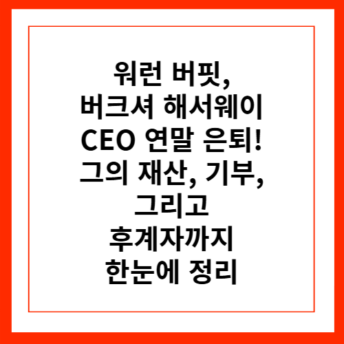 이제 모두가 궁금해합니다. 버핏의 재산은 얼마나 될까? 그가 남긴 기부금은? 버크셔 해서웨이의 미래는? 오늘은 최신 데이터와 함께 워런 버핏의 은퇴, 재산, 기부금, 그리고 후계자까지 핵심만 쏙쏙 정리해드립니다.