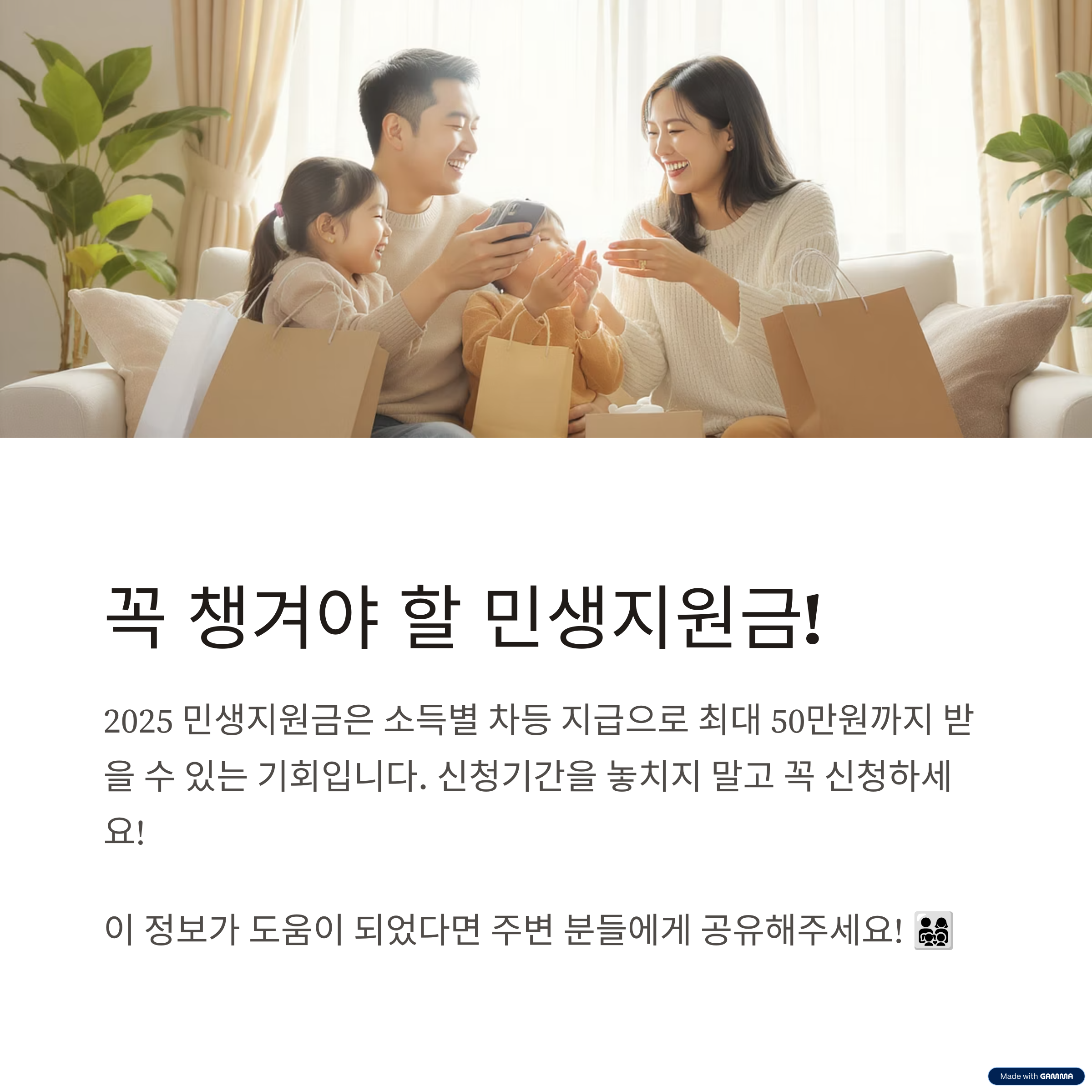 고물가에 지친 국민을 위한 2025 민생지원금이 곧 지급됩니다.