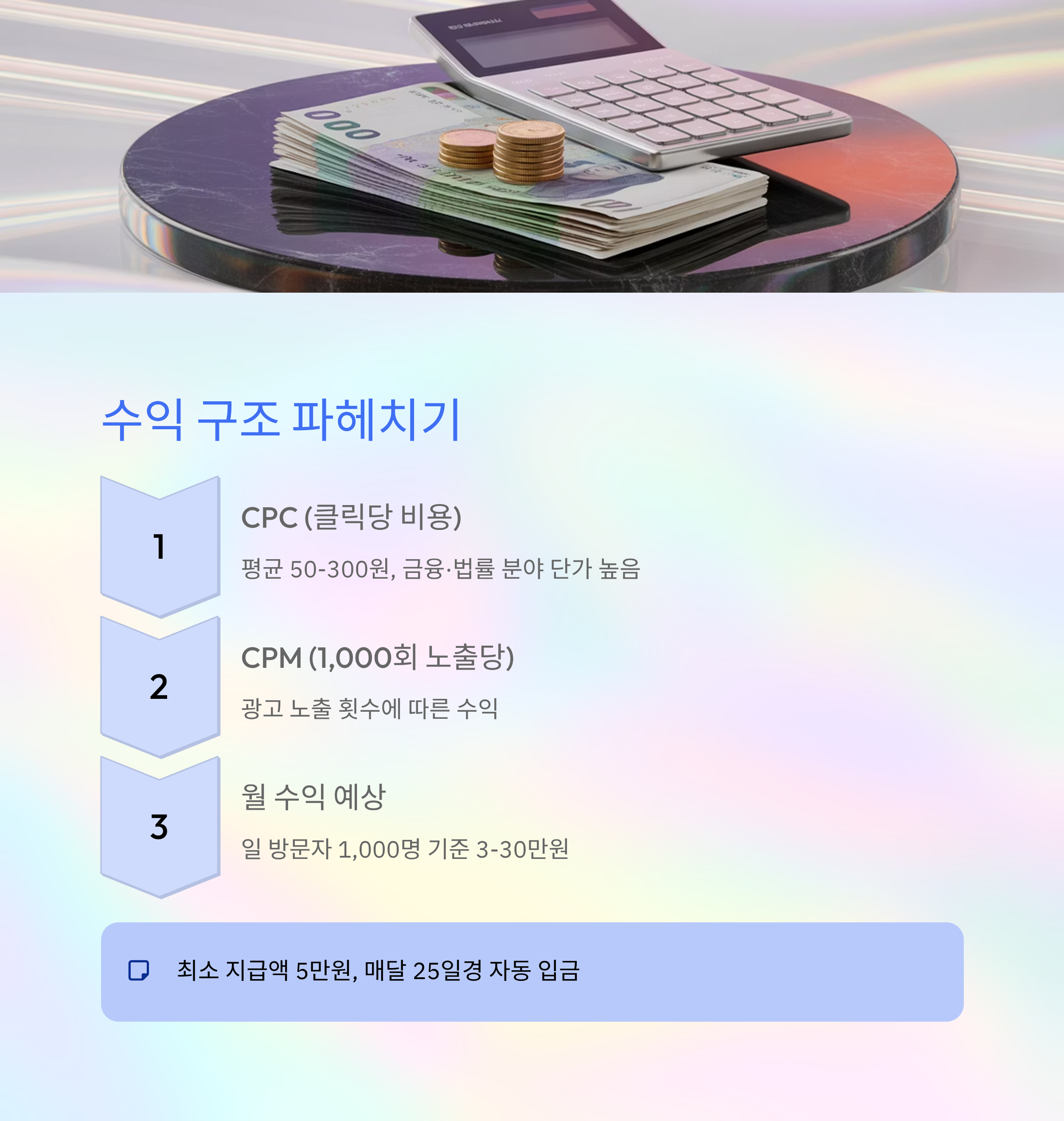 애드포스트 수익은 크게 **CPC(클릭당 비용)**와 **CPM(1,000회 노출당 비용)**으로 결정됩니다. 광고 단가는 블로그 주제, 광고 종류, 방문자의 특성에 따라 천차만별입니다.
