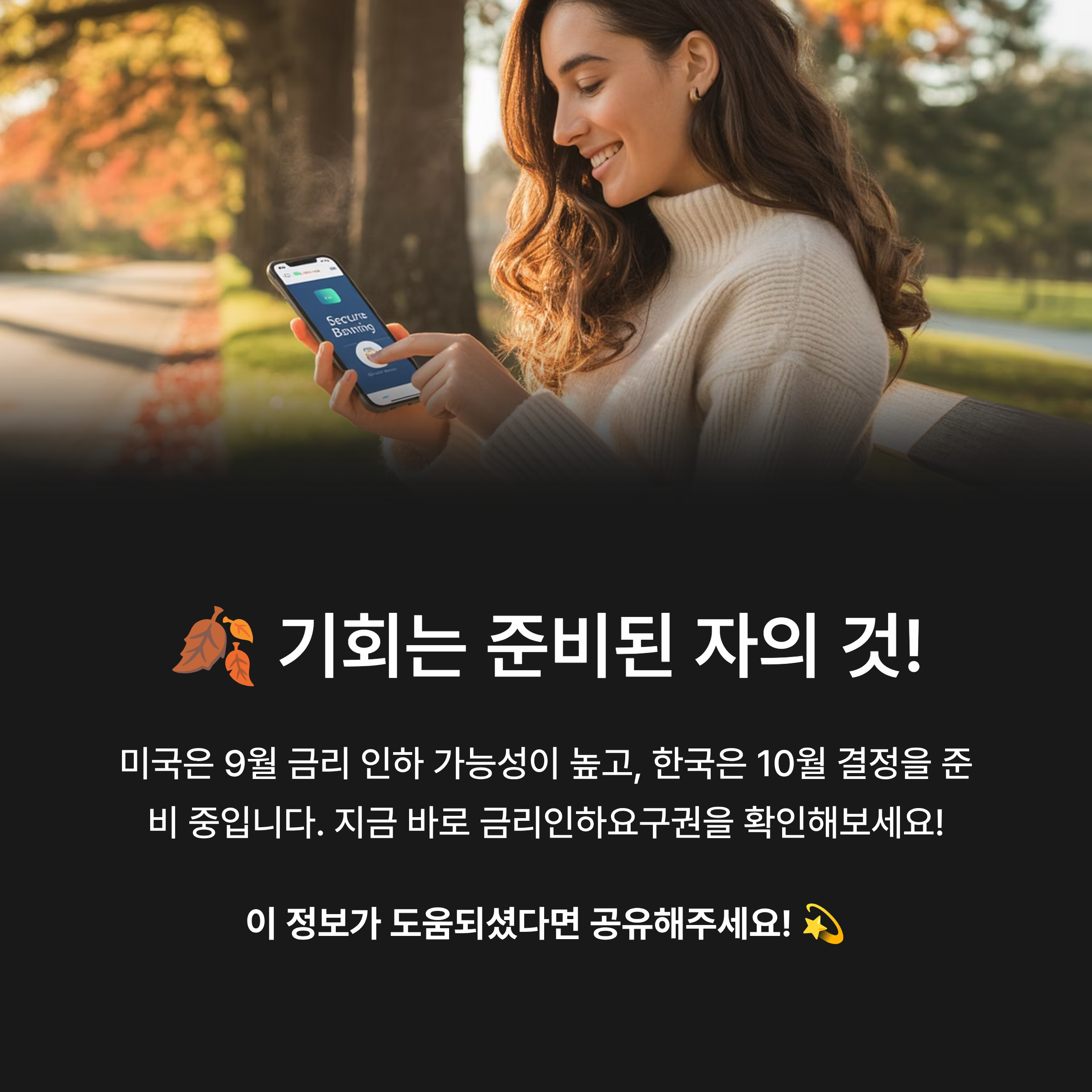 지금 바로 사용 중인 대출 은행의 앱을 켜보세요. 그리고 '금리인하요구권'을 검색해보세요. 작은 실천 하나가 당신의 가을을 더욱 풍요롭게 만들 수 있습니다. 🍂