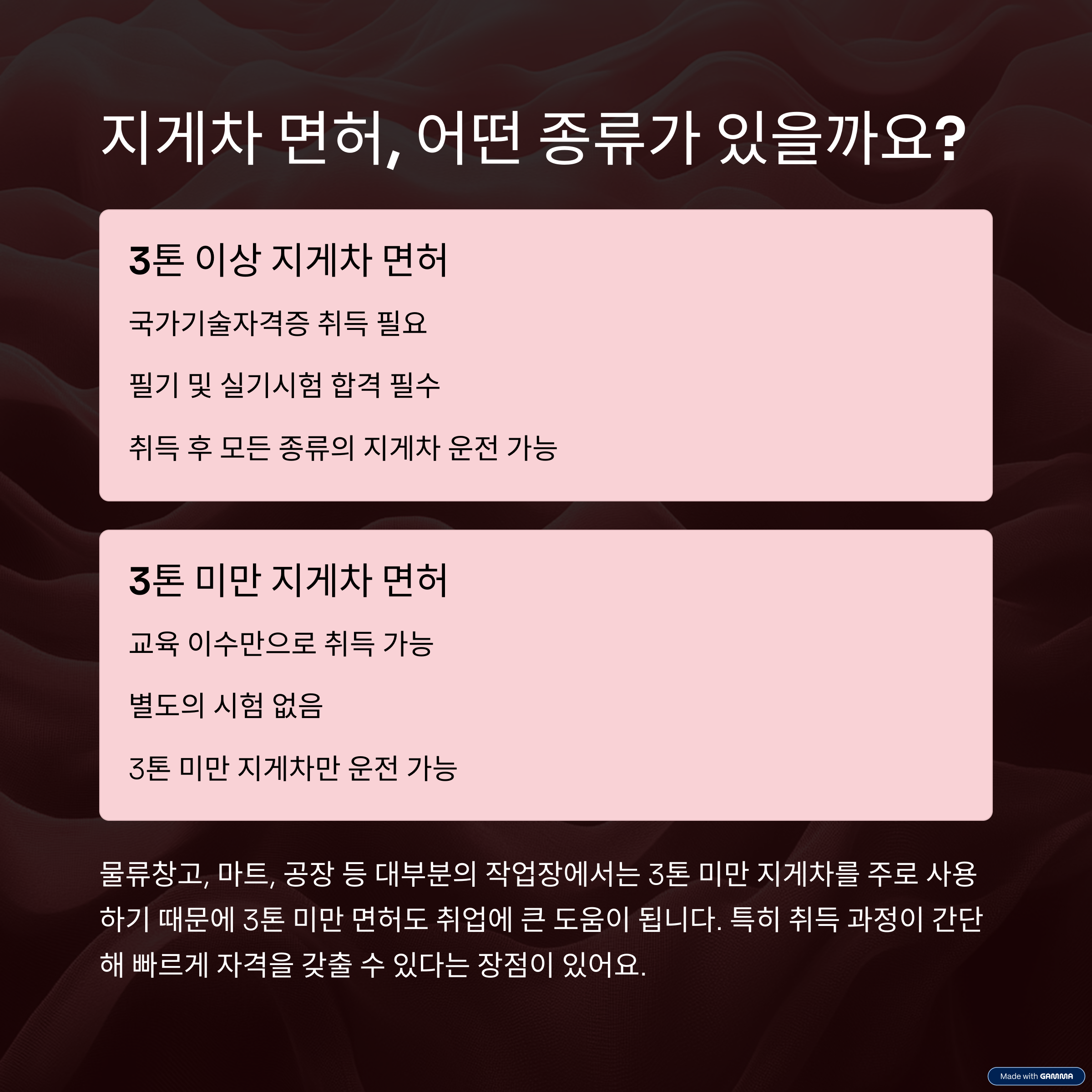 지게차 면허는 크게 두 가지로 나뉩니다: