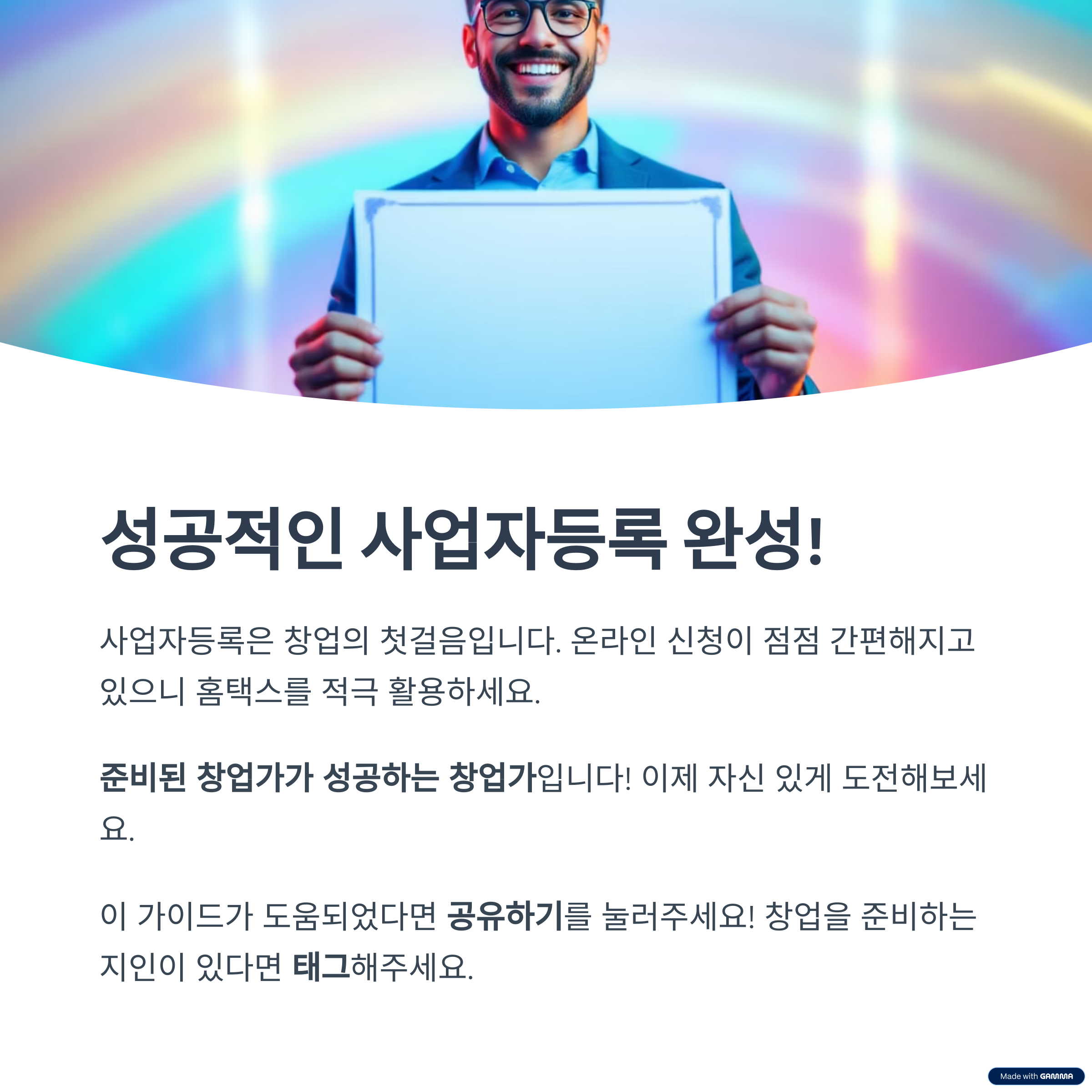 준비된 창업가가 성공하는 창업가랍니다! 이제 당신도 자신 있게 사업자등록에 도전해보세요. 💪✨