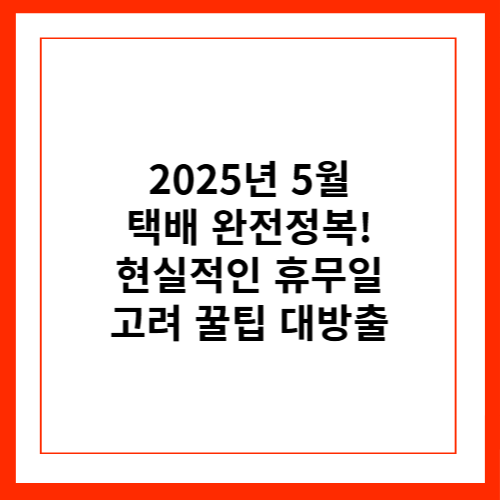 2025년 5월, 황금연휴를 앞두고 택배 대란이 걱정되시나요? 단순히 휴무일 정보만 아는 것으로는 부족합니다! 오늘은 현실적인 부분을 고려하여 2025년 5월 택배 운영 상황을 예측하고, 슬기롭게 대처하는 방법을 알려드릴게요. 택배 스트레스 없이 행복한 5월을 보내실 수 있도록 꼼꼼하게 준비했습니다! 🎁