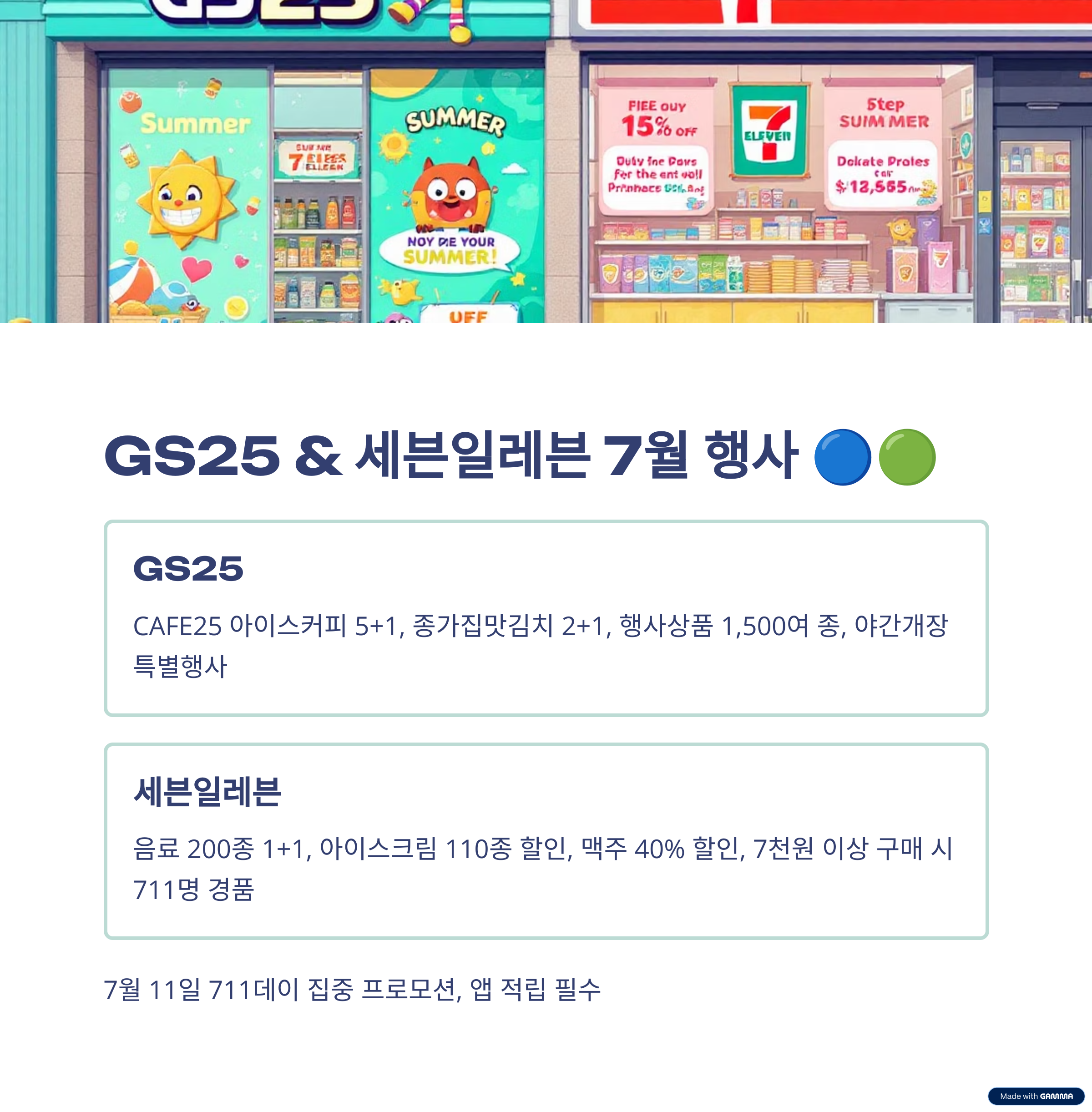 - 특이사항: 7월 11일 711데이 집중 프로모션, 앱 적립 필수