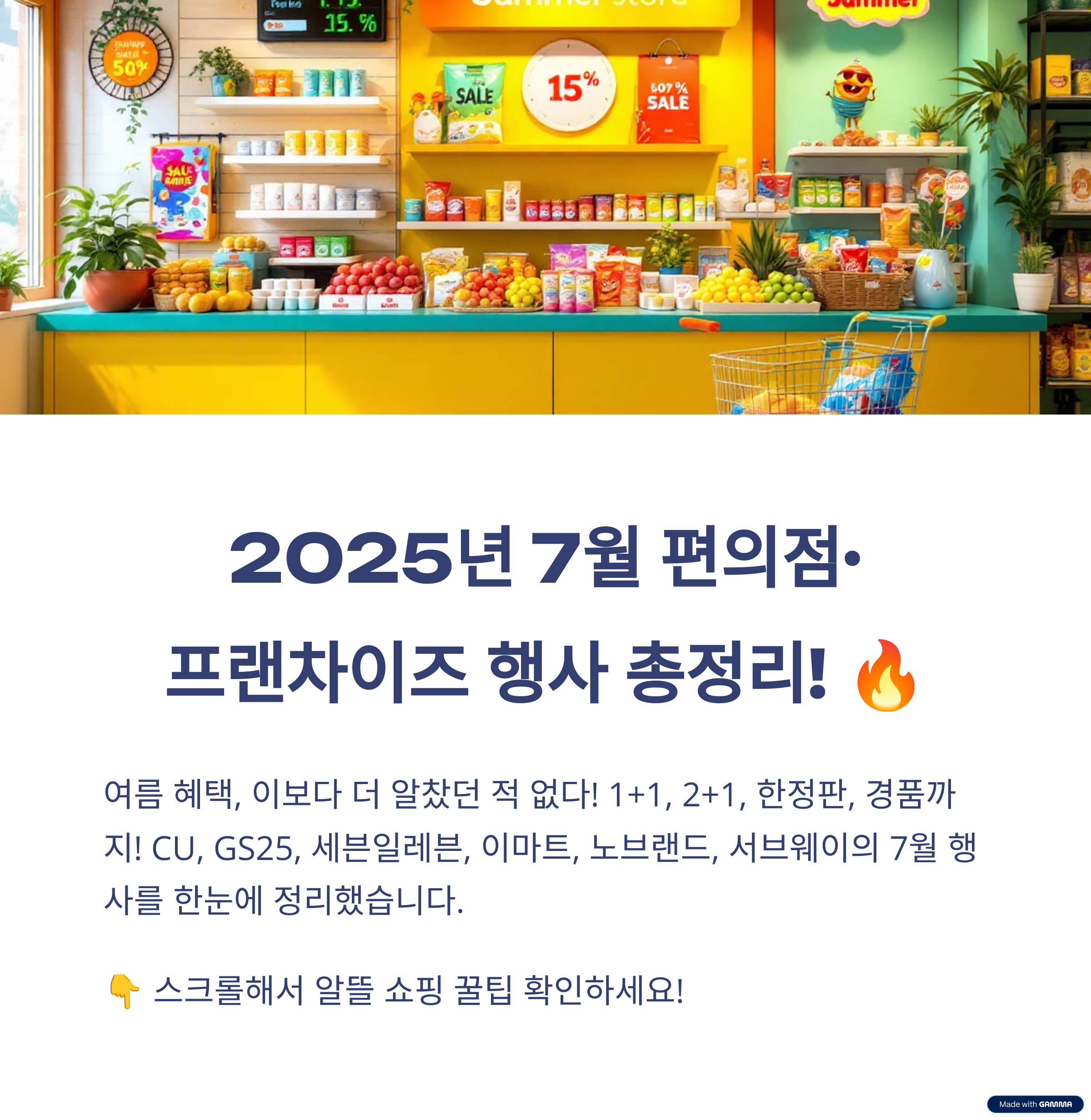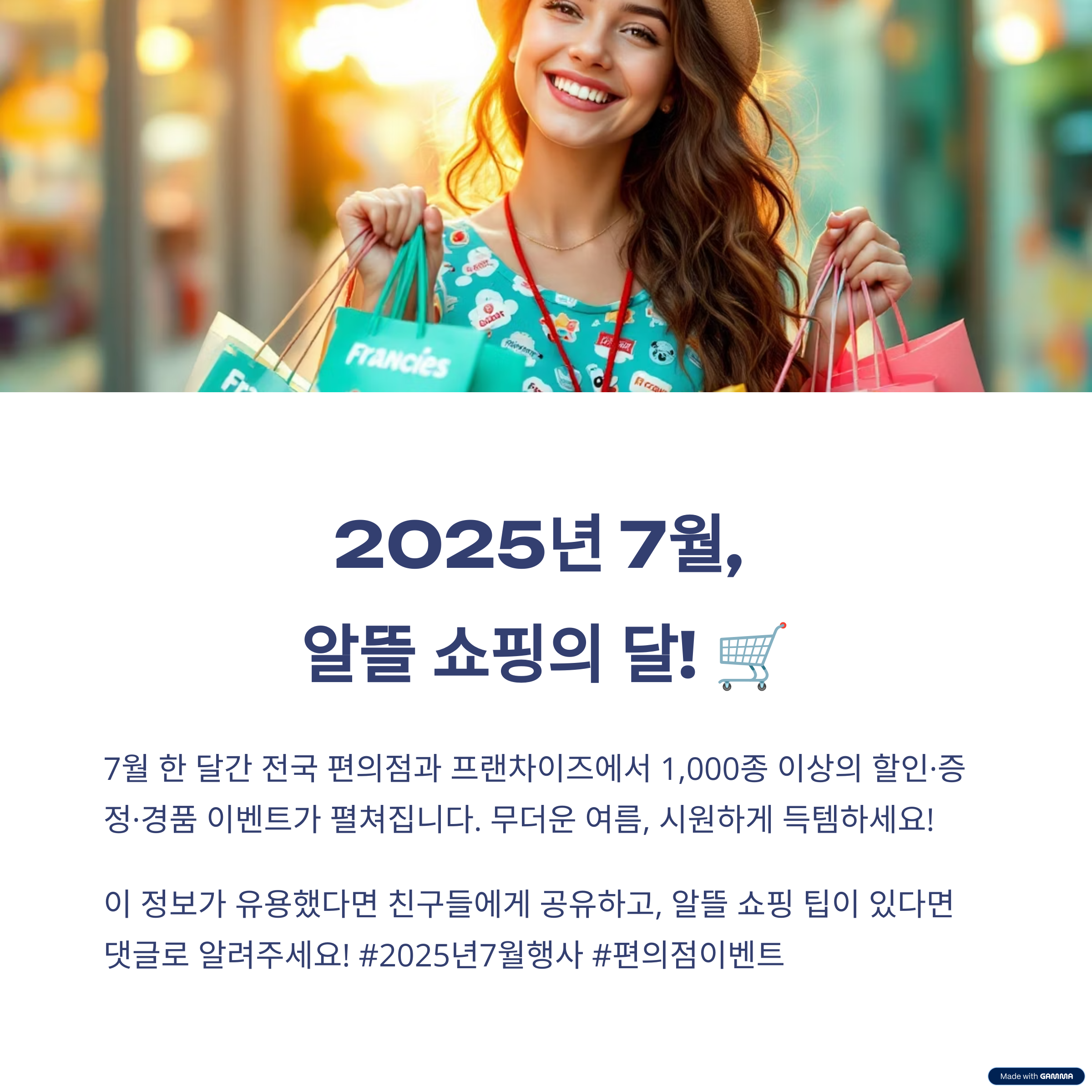 7월 한 달간 전국 5대 편의점과 프랜차이즈에서 1,000종 이상의 할인·증정·경품 이벤트가 펼쳐집니다.