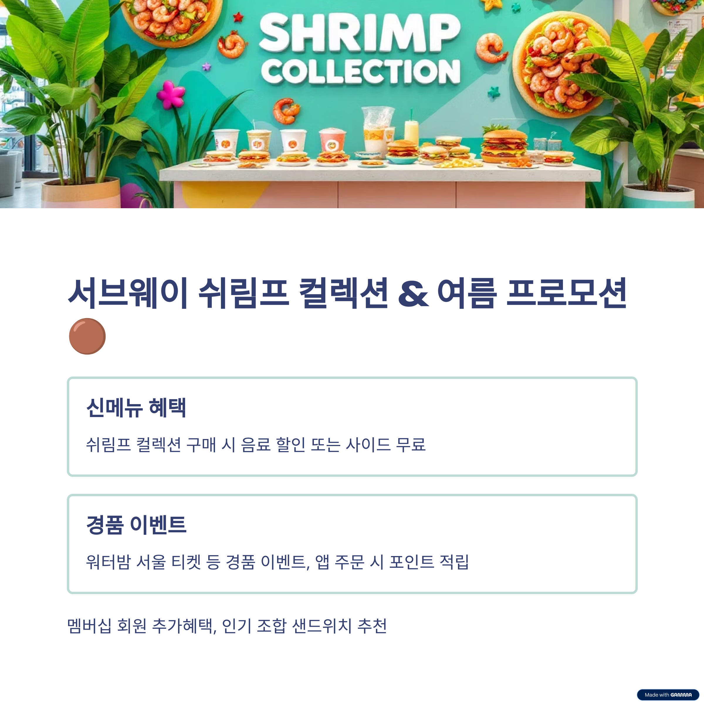 🟤 서브웨이 – 쉬림프 컬렉션 신메뉴, 여름 한정 프로모션