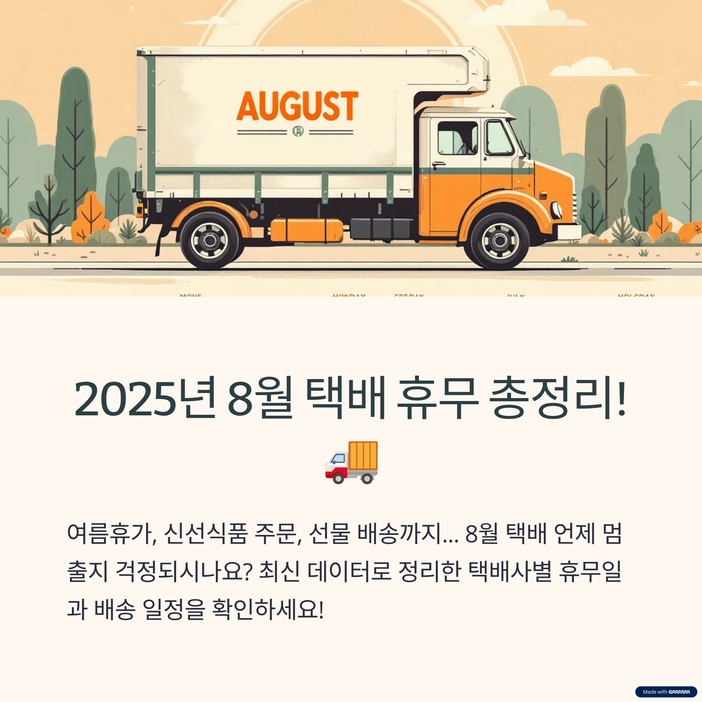 2025년 8월, 각 택배사의 정확한 휴무일과 배송 일정을 최신 데이터로 정리했습니다.