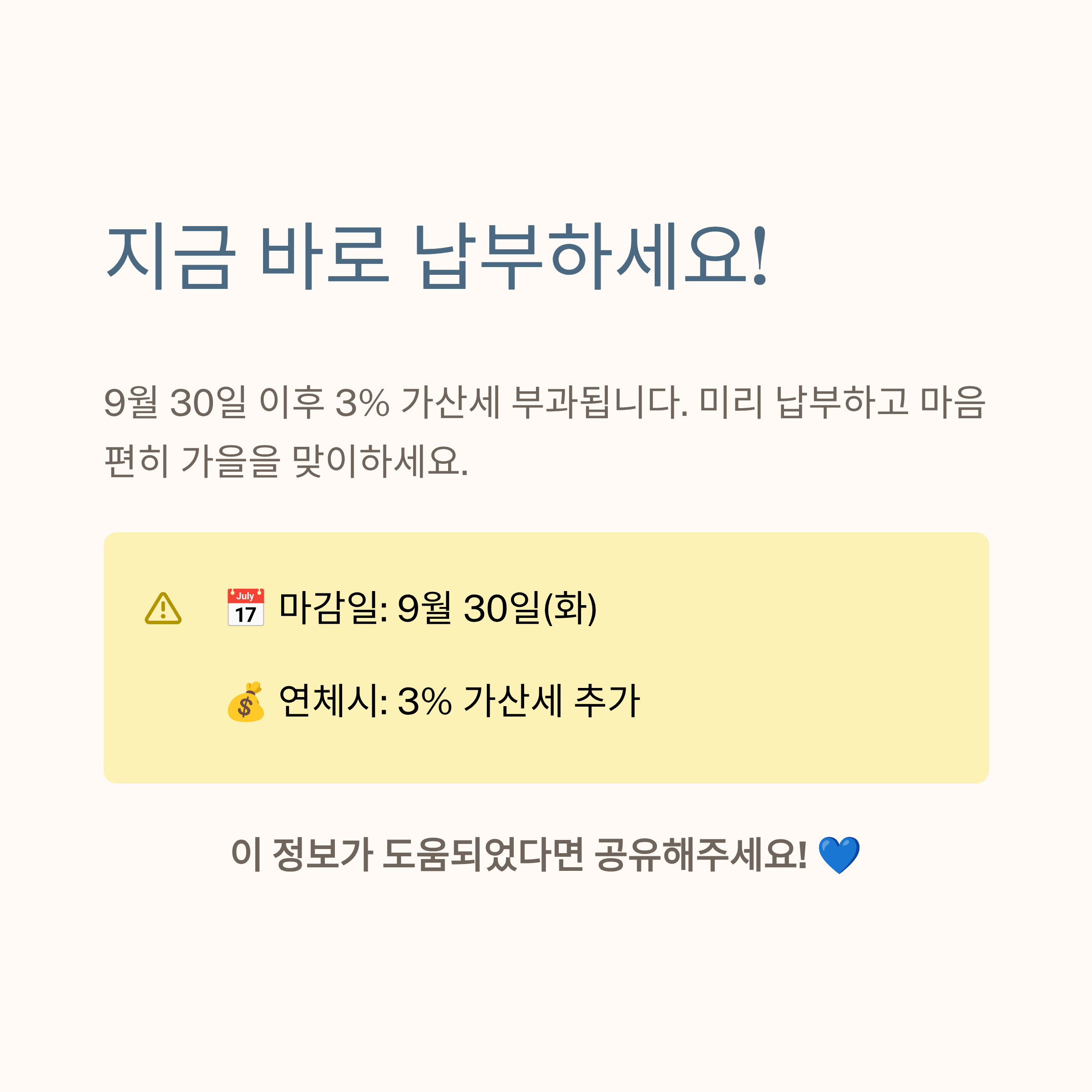 결론 : 9월 30일까지 잊지 말고 납부하세요!