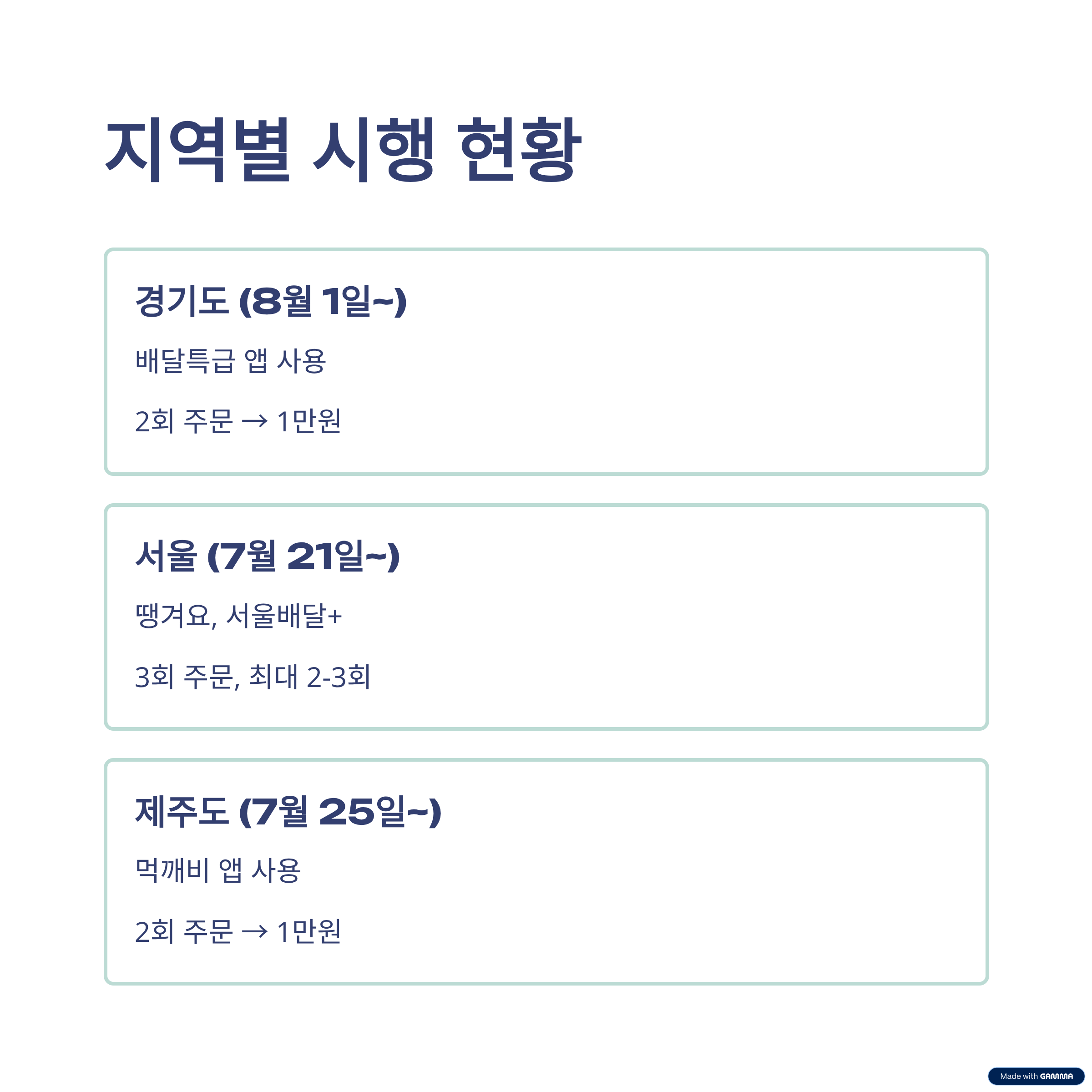 - 앱별·지역별 적용일 상이: 경기도는 8월 1일, 전국 대부분 7월 25일 이후