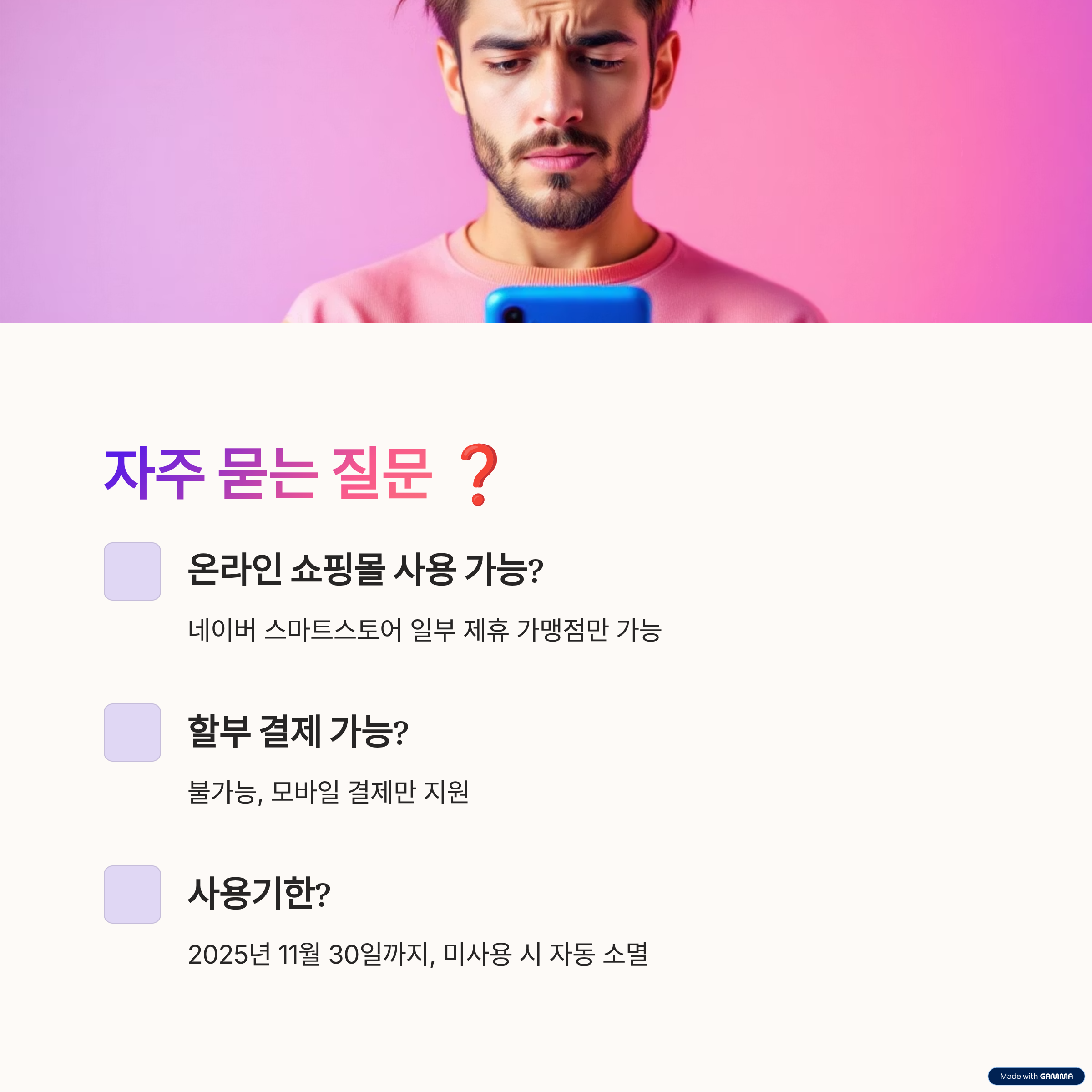 - 온·오프라인 일부 사용 가능 : 네이버 스마트스토어 등 제휴몰 한정