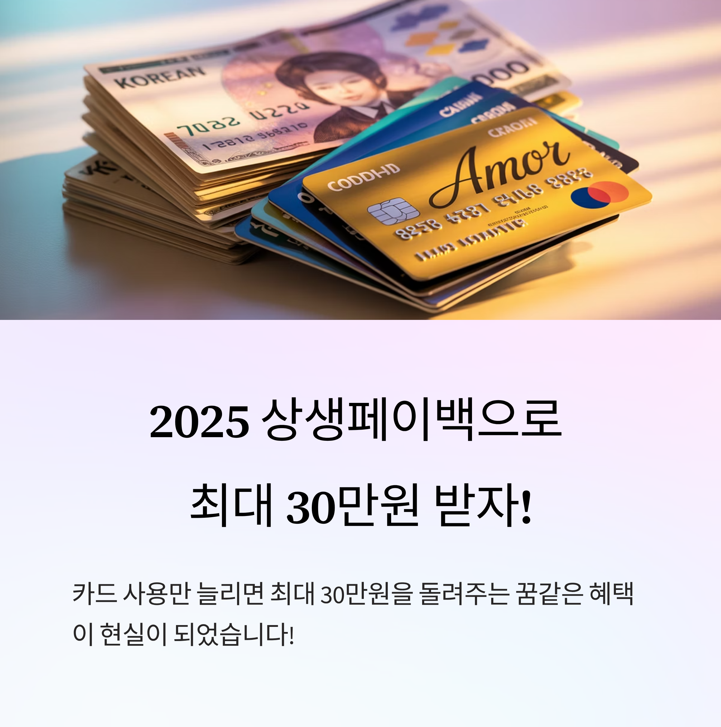 작년보다 카드만 조금 더 쓰면 최대 30만원을 돌려주는, 그야말로 상상만 하던 혜택이 2025년 현실이 되었습니다! 많은 분들이 '상상페이백'으로 알고 계시지만, 이 정책의 공식 명칭은 바로 *상생페이백'입니다.