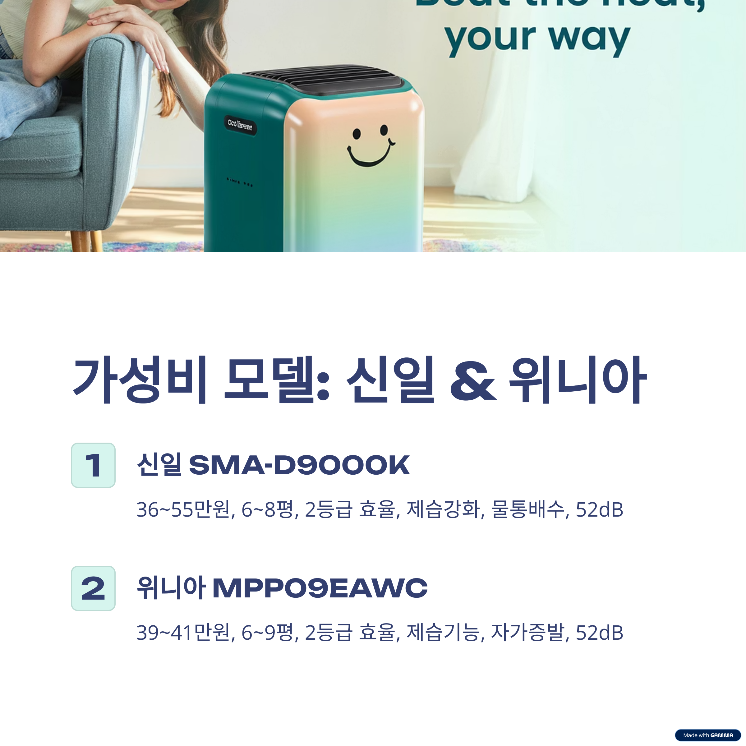 - 주요 트렌드: 실외기 없는 미니에어컨, 저소음·고효율 인버터, 스마트 기능 탑재 제품 인기