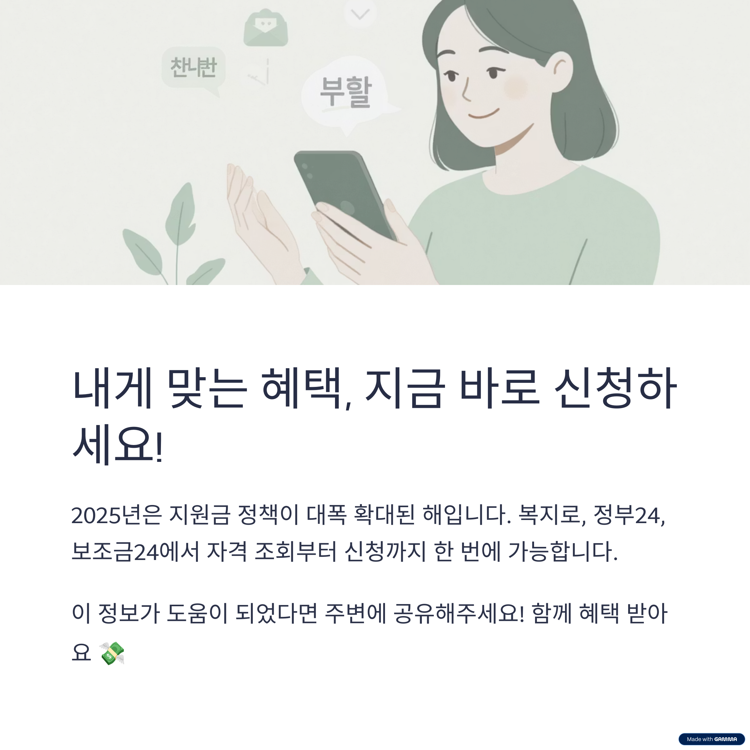 “2025년, 지원금 안 챙기면 진짜 손해! 내게 맞는 혜택 지금 꼭 확인하세요!”