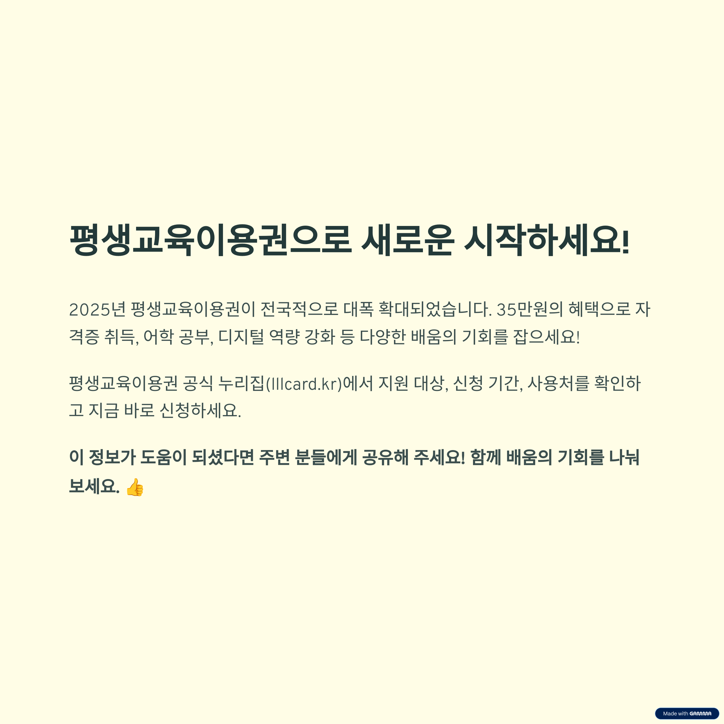 2025년 평생교육이용권(구 평생교육바우처)은 전국적으로 대폭 확대되어