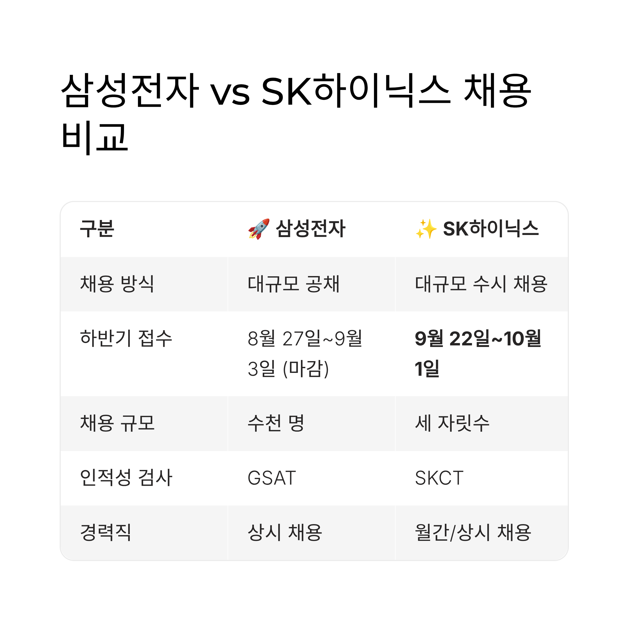 3. 삼성전자 vs SK하이닉스 하반기 채용 한눈에 비교