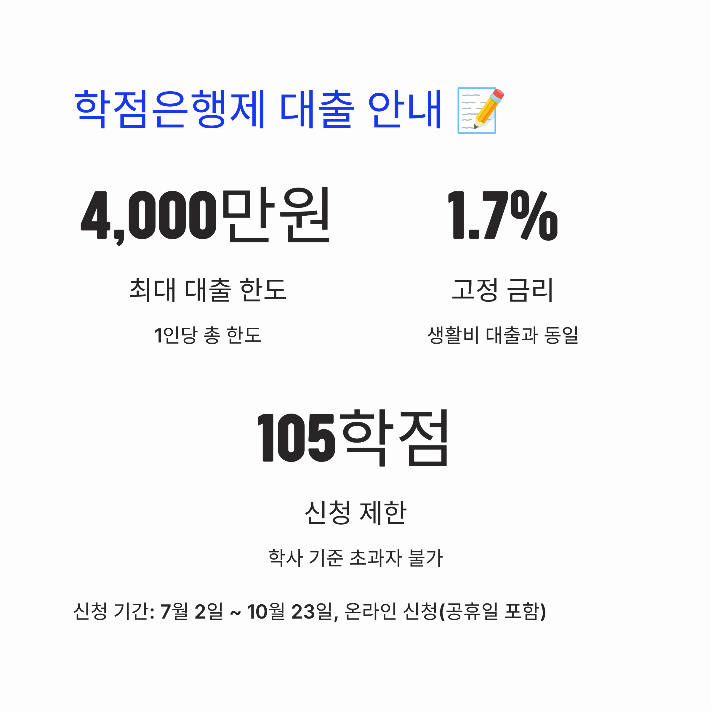 | 대출 금리 | 고정금리 1.7% | 생활비/학점은행제 공통 |