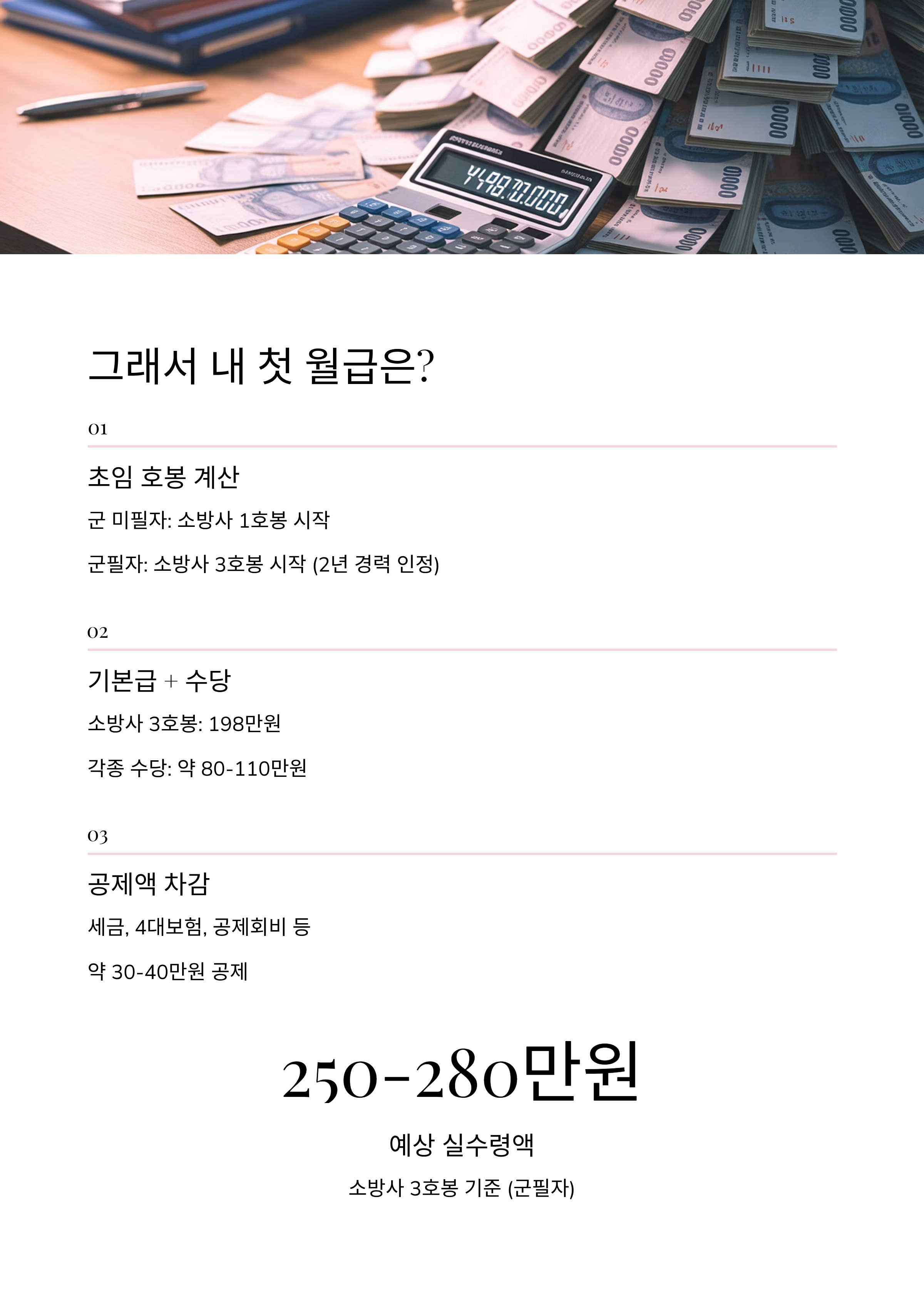 2. 신임 소방관 첫 월급, 얼마일까? (초임 호봉 및 실수령액)