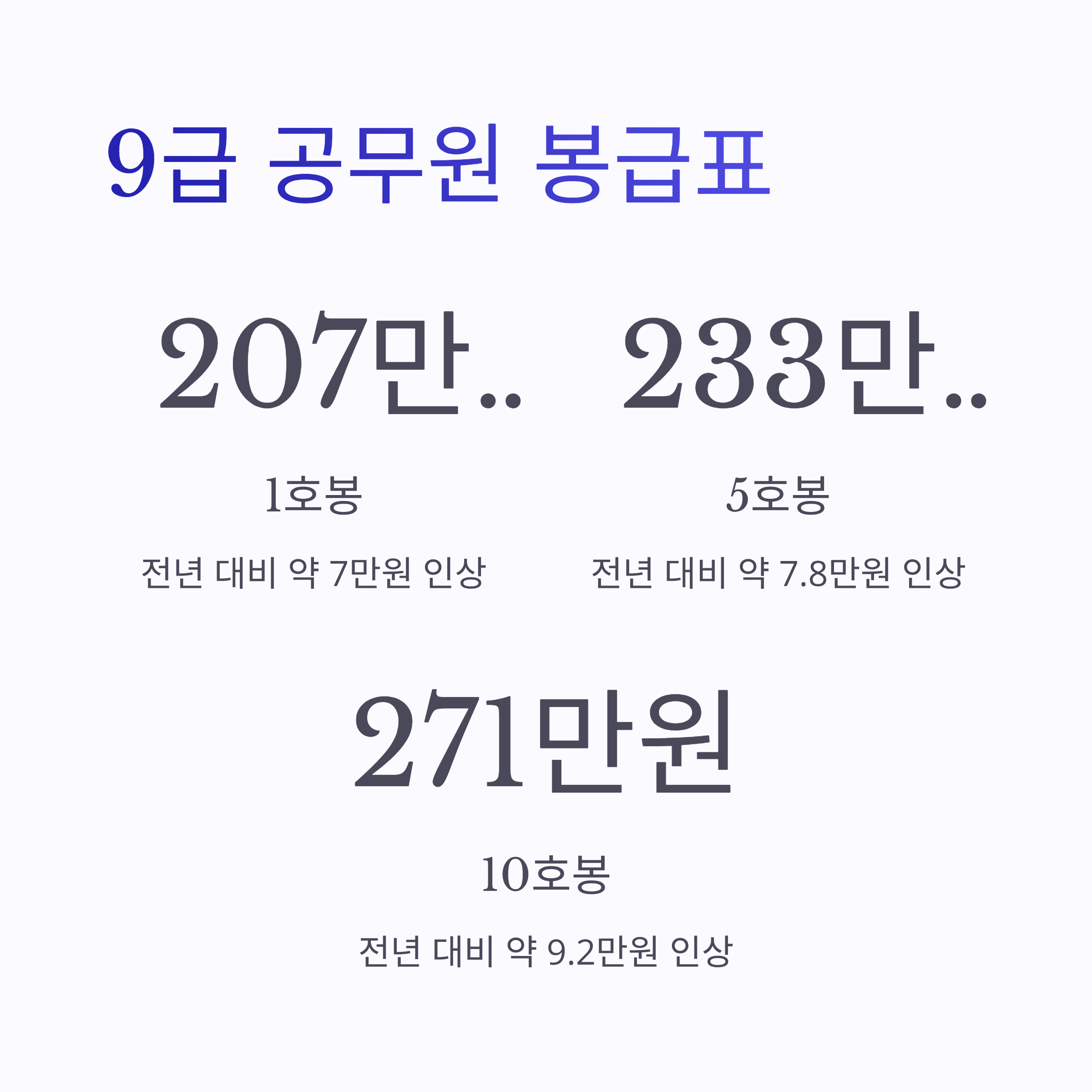"그래서 내 월급은 얼마나 오르는 걸까?" "9급 1호봉 실수령액은 이제 250만 원이 넘을까?"