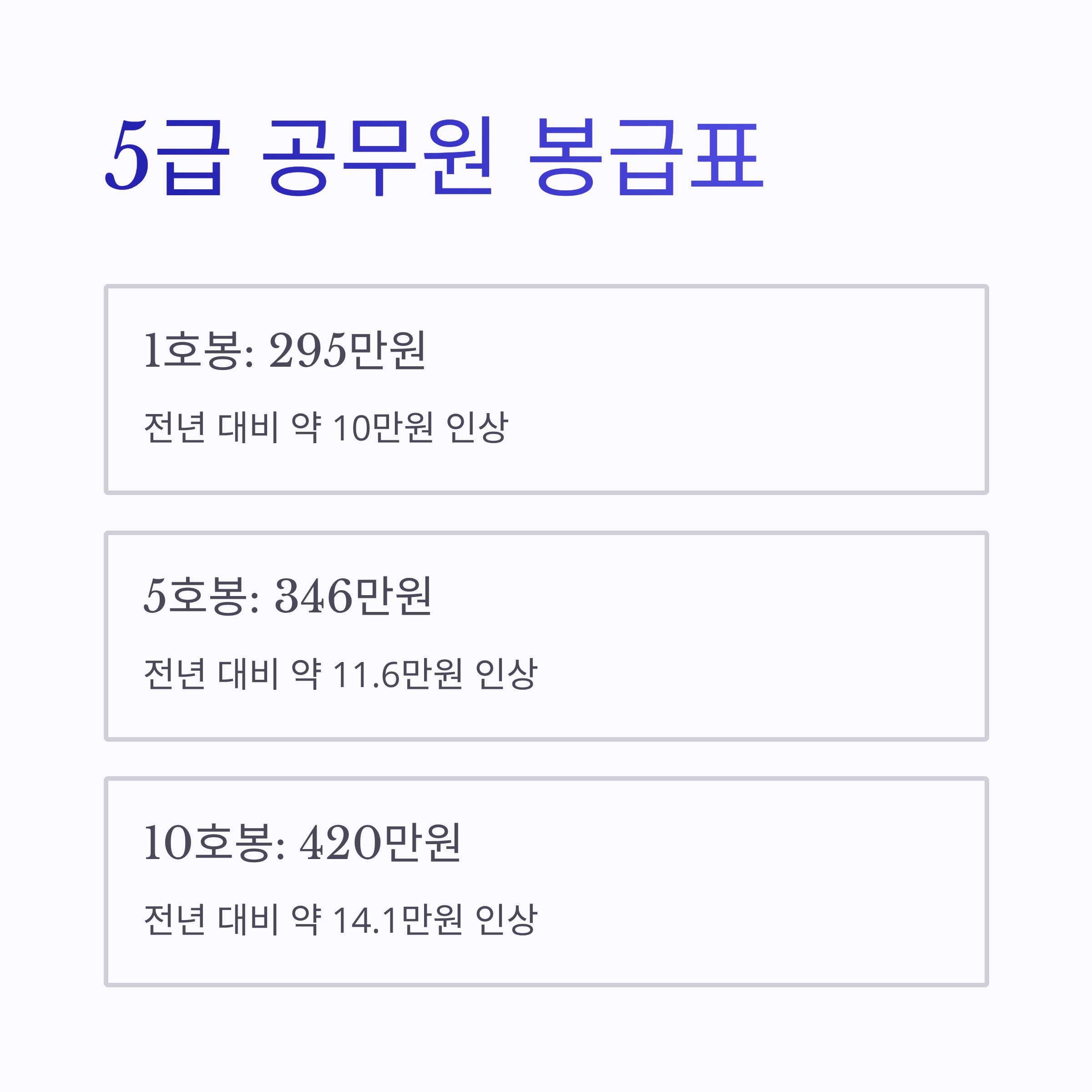 | 5급 공무원 | 약 2,950,000원 | 약 3,460,000원 | 약 4,200,000원 |