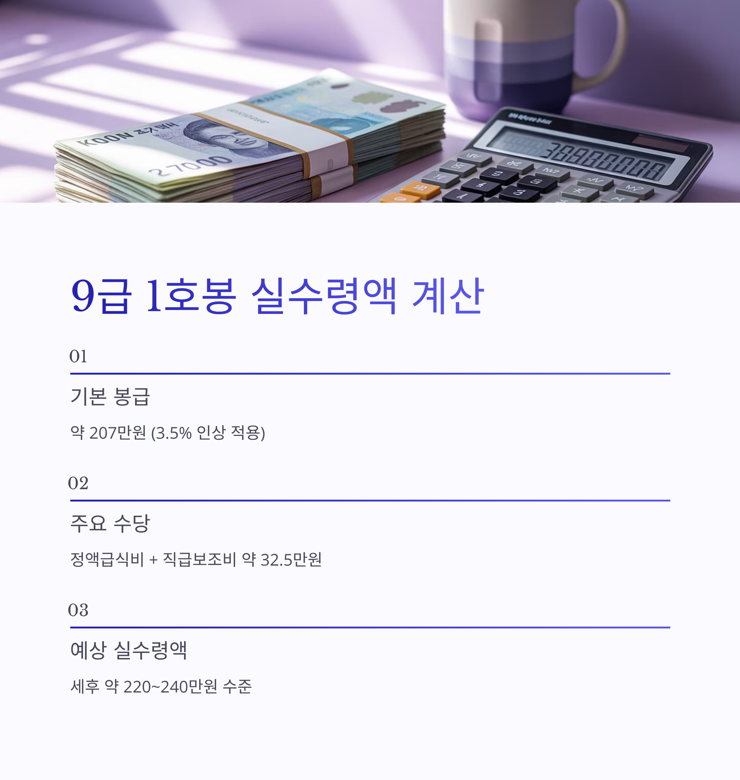 [9급 1호봉 실수령액 예상 계산]