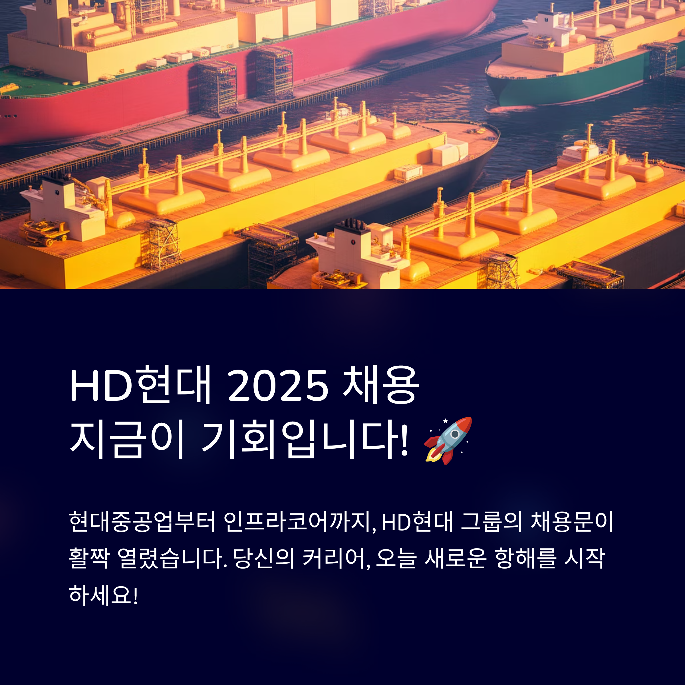 지금까지 살펴본 것처럼, HD현대는 조선, 건설기계, 에너지를 아우르는 거대한 사업 포트폴리오를 바탕으로 미래를 향한 힘찬 도전을 계속하고 있습니다. 이번 2025년 하반기 채용은 단순히 일자리를 얻는 것을 넘어, 대한민국 경제의 심장에서 글로벌 무대를 향해 함께 성장할 수 있는 일생일대의 기회입니다.